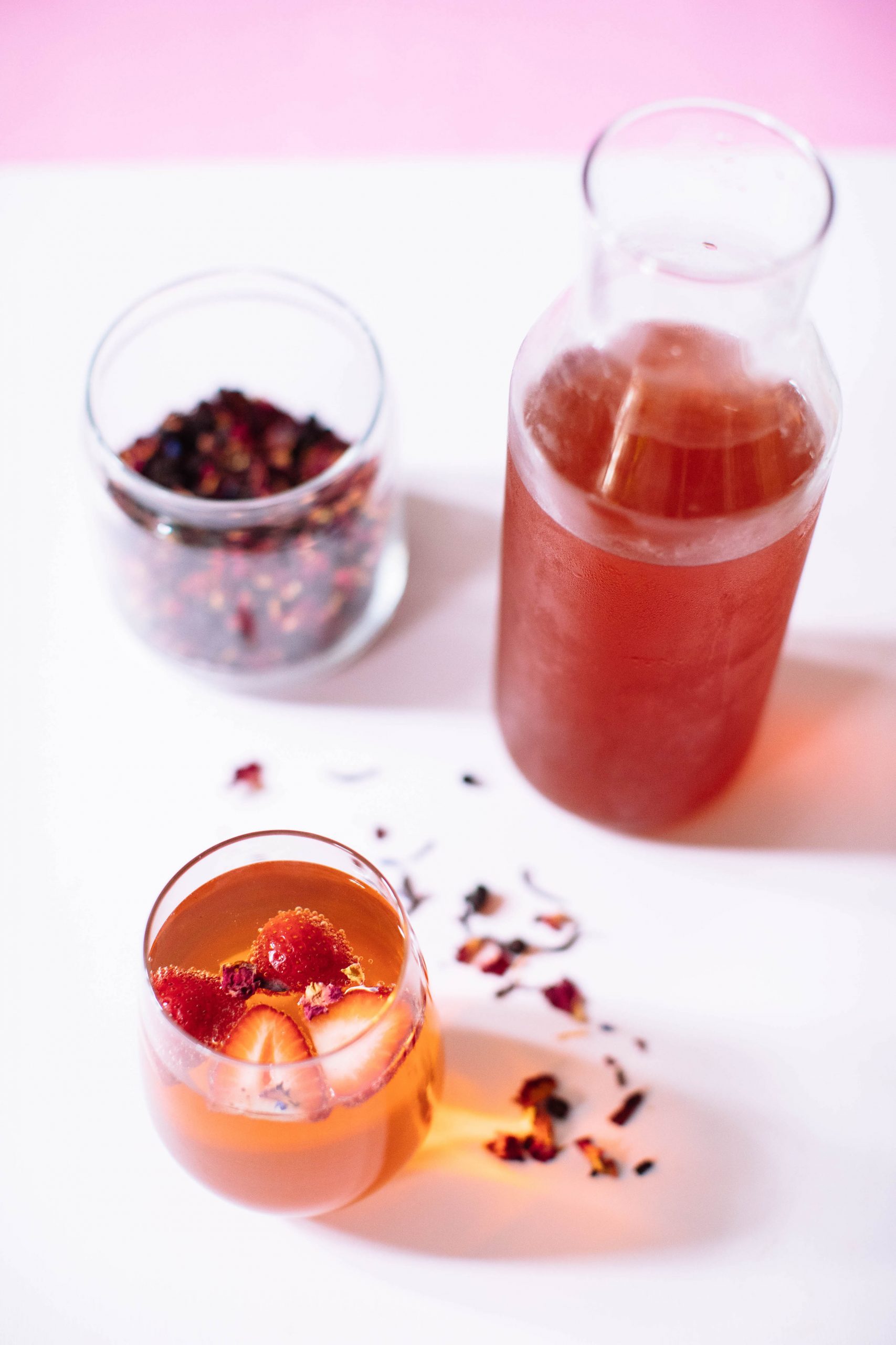 Just like my herbal infusion recipes and guide, this Strawberry Goji Berry Rose Refresher is a great example of how to make hydration time, delicious and feel super fancy without tons of effort or time.