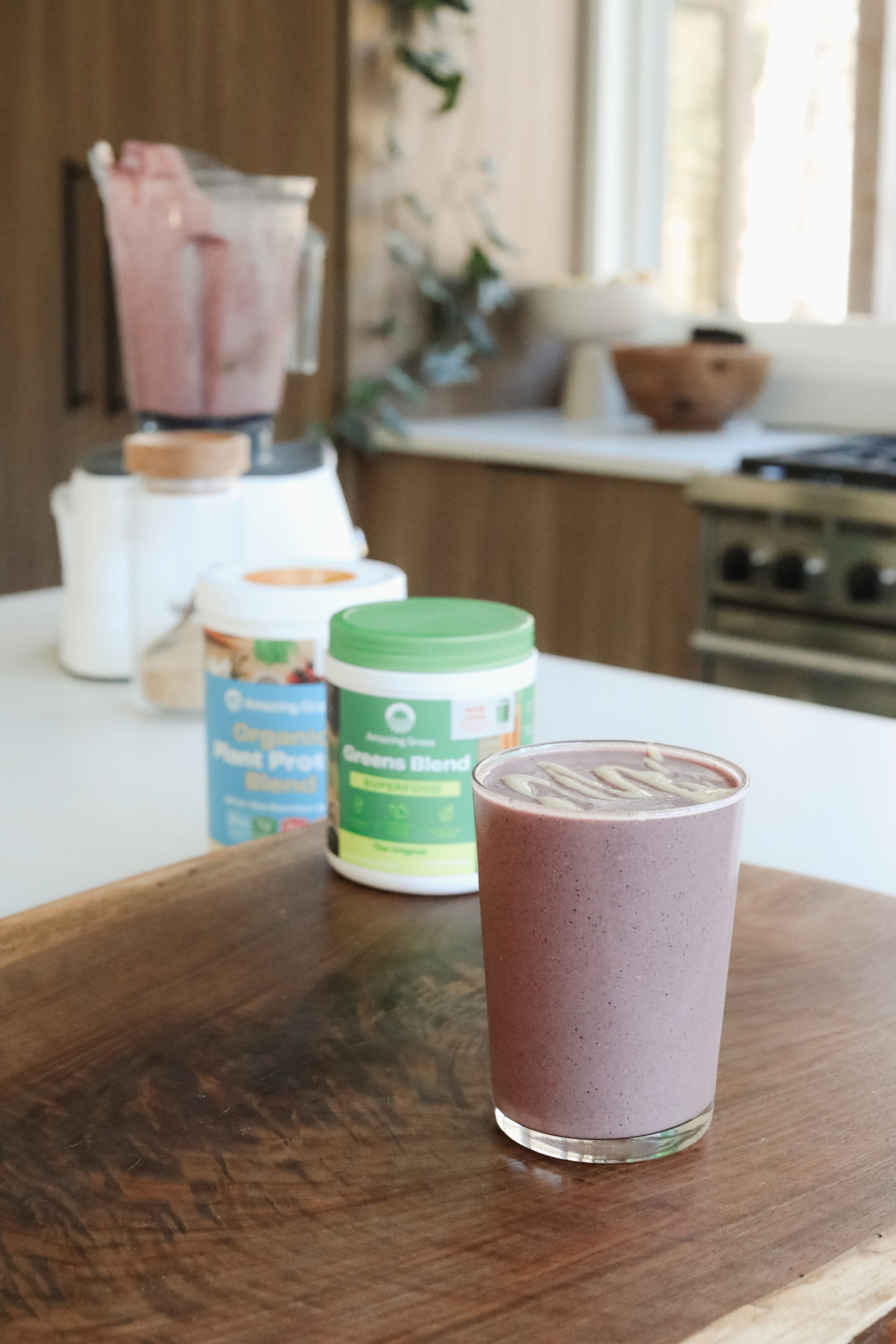 - 1 scoop of Amazing Grass Organic Plant Protein Blend vanilla flavor