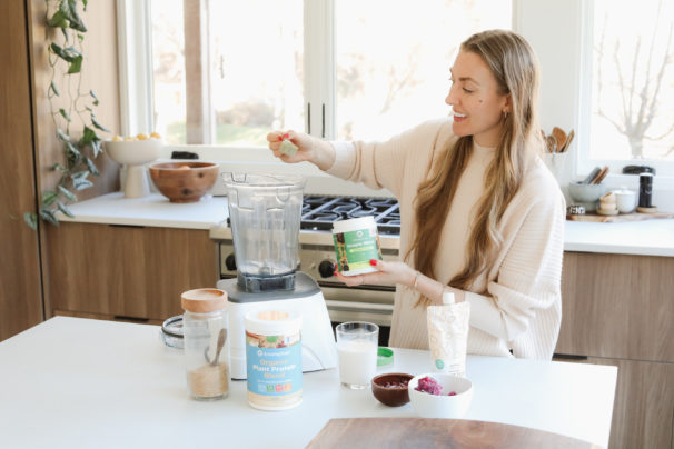 The Greens Blend is such an easy and convenient way to get 2 servings of fruits and vegetables into your day along with 7 nutritious greens, as well as vitamins C & K in just 1 scoop. Plus, their Organic Plant Protein Blend is great for all protein-powder users or those who are looking to boost the plant-based protein in any smoothie to make it more balanced. It’s gluten-free and plant-based, plus just one scoop provides 20g of protein, which is the exact protein amount we recommend here at Nutrition Stripped for the average person at each meal.