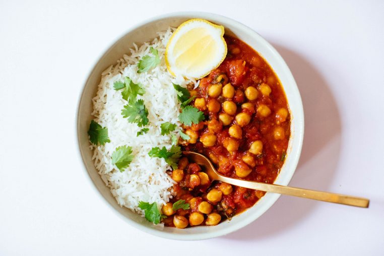 If you’re ever looking for a warming, comforting, nourishing, and filling meal that’s made in about 20 minutes, then look no further. This Chickpea Tomato Curry with Turmeric Rice is a great entree dish to make on the weekends for plenty of leftovers for a quick lunch the next day.