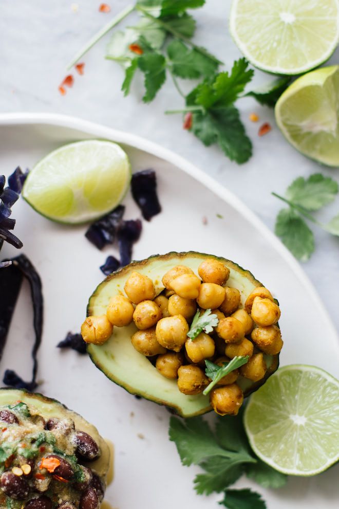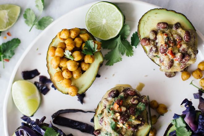 Avocado boats are such a fun way to put together a nourishing meal in under 10 minutes! There’s endless variations you can try, but these three — sesame cabbage, spicy black bean, and curry chickpeas — are all a delicious option!