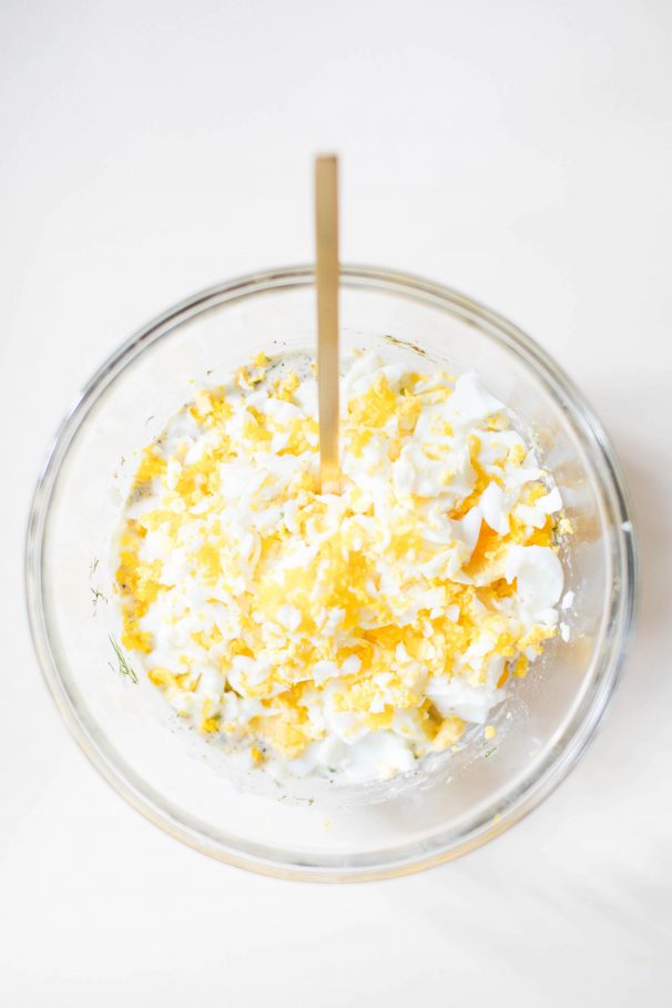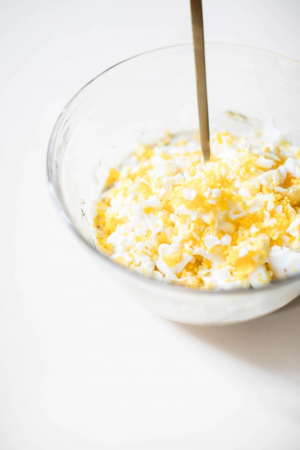 Now that we’ve established the most important ingredient when making the best egg salad — eggs — now on to the other key components which make up egg salad, the dressing, the crunch, and how you serve it.