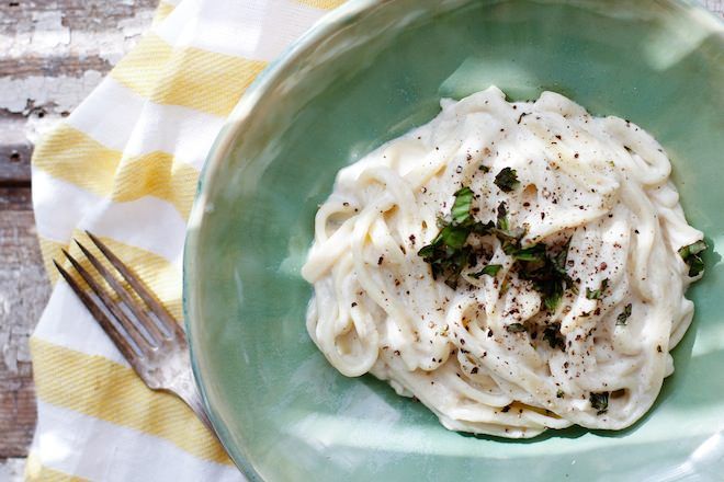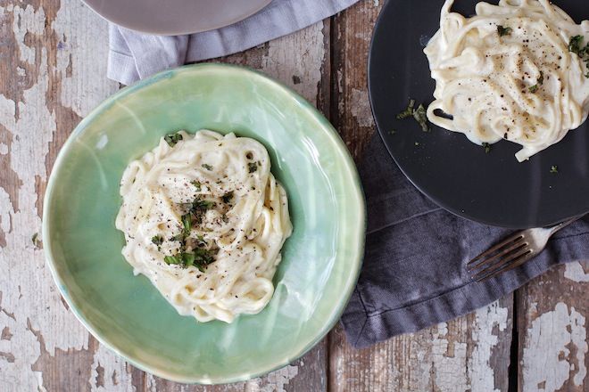 Cauliflower isn’t the only player in this non-dairy Alfredo sauce . What makes it almost identical to the original is cashews and macadamia nuts. Both of these nuts create an incredibly thick, creamy, and buttery flavor to the alfredo that you simply cannot obtain just using cauliflower. Obviously, if you’re watching your fat intake (even those that are healthy fats), then you could use extra cauliflower and reduce the nuts…but that would be a completely different recipe now wouldn’t it? I promise, give this one a shot first and share it with your friends.