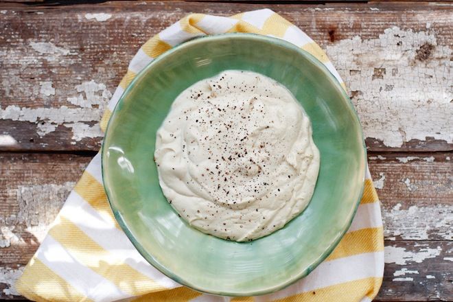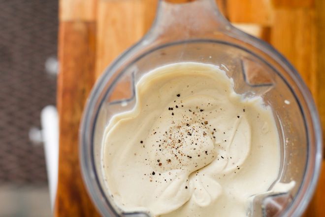 - Add all ingredients into a high speed blender, start with the almond milk and cauliflower, gradually adding in ALL remaining ingredients. Blend until smooth and creamy. Adjust liquid by adding more almond milk if you prefer a thinner sauce.
