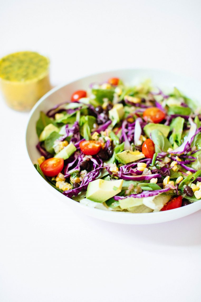 This Southwest Salad combines some of our favorite healthy ingredients and has a little something for everyone. Creamy avocado, fresh sweet corn, and nutrient-dense black beans are the perfect combination for this fun and colorful salad.