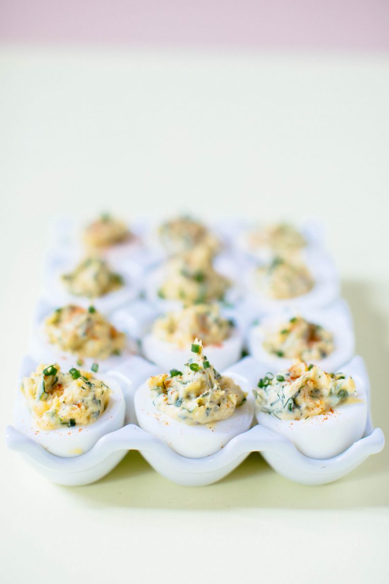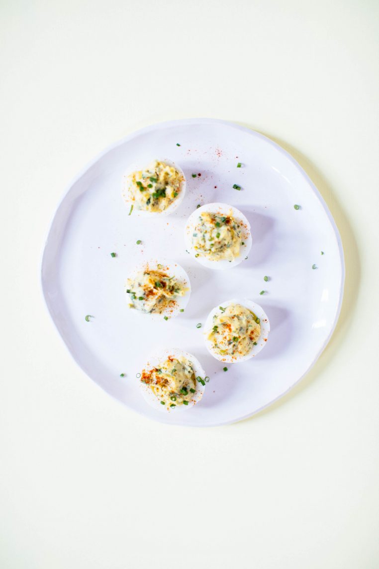 These are not your typical boring deviled eggs. The dish you most likely have seen passed around at weddings or dinner parties, with “gloopy” filling consisting primarily of mayonnaise and not much else. We’ve got a fresh, light, and fluffy alternative to the classic deviled egg.