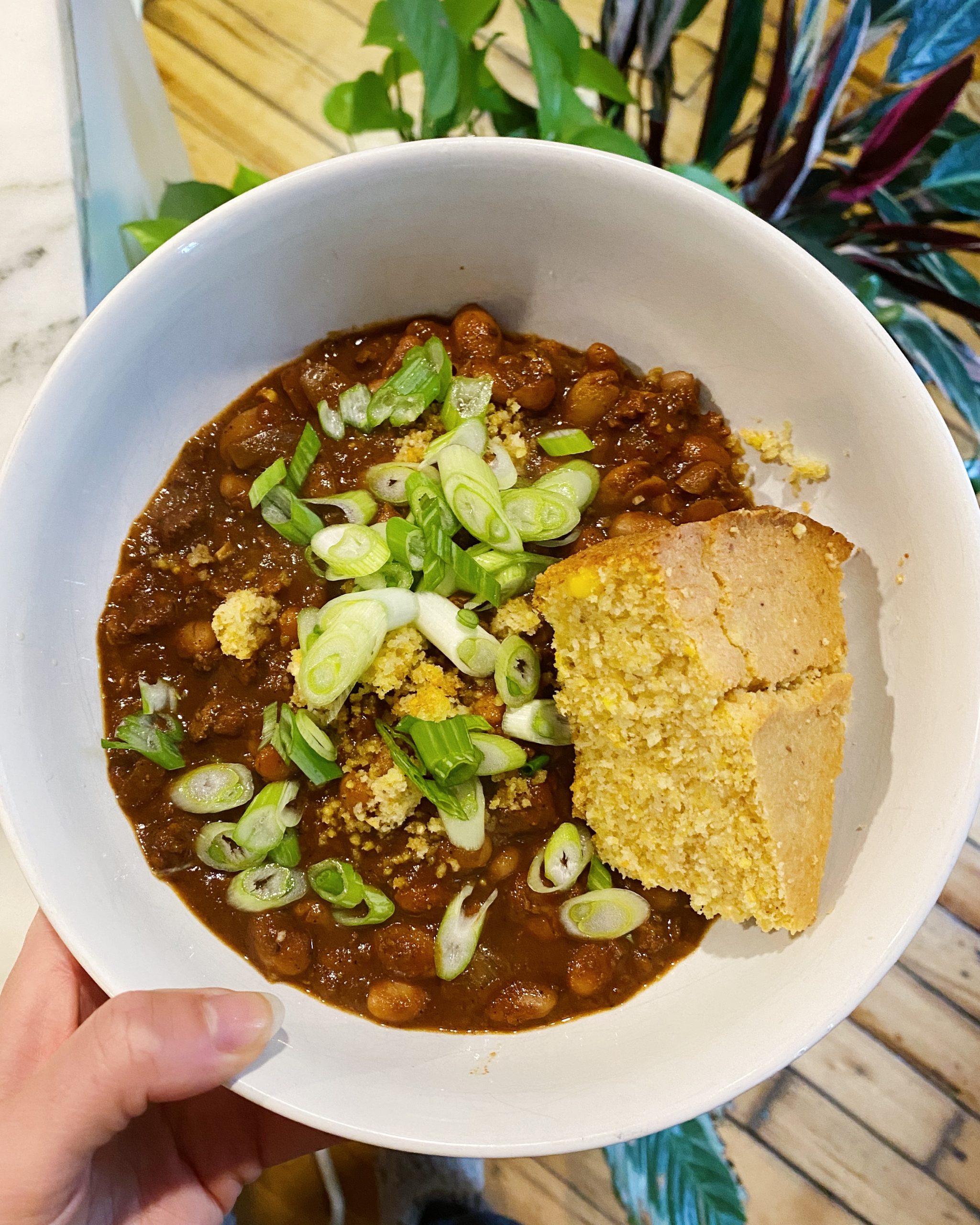 It might sound like an odd ingredient combination for you if you didn’t grow up eating Cincinnati-style chili, but try this one out, it’s too good! The subtle rich dark chocolate and warming cinnamon take this chili to a whole new level of comfort.
