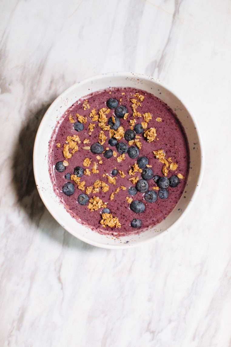 This Blueberry Banana Crunch Smoothie Bowl is packed with antioxidants! You have the blueberries and crunchy homemade granola to thank for that. You don’t see it and you won’t taste it, but this healthy smoothie recipe is packed with greens, too!