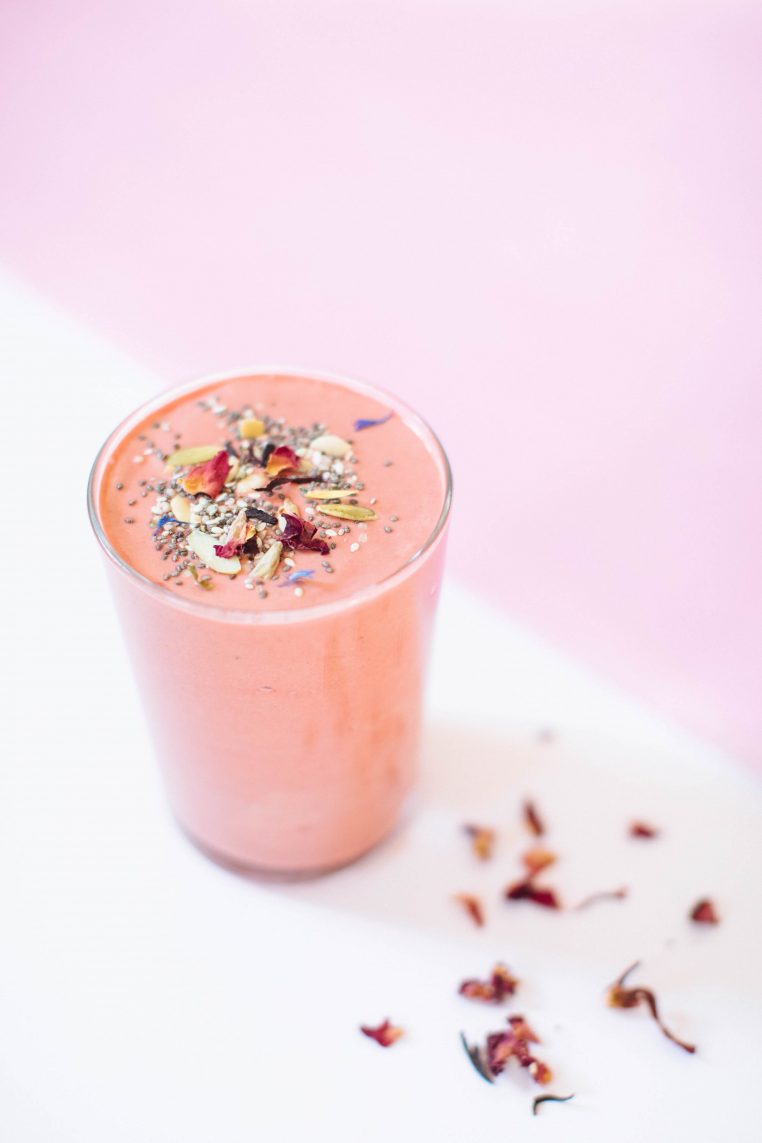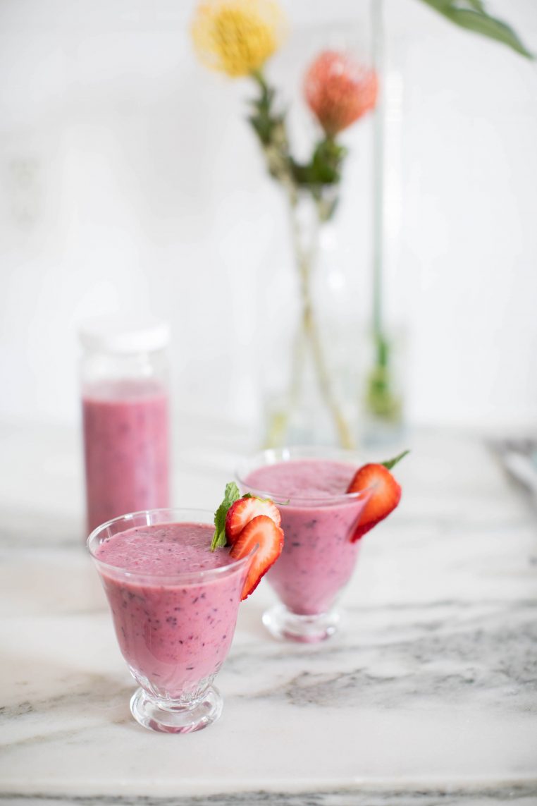 If you’re not a fan of super sweet smoothies, this one’s for you. The addition of ginger in this healthy smoothie recipe balances out the sweetness of the strawberries. It’s also a great way to give your regular strawberry smoothie a little change!