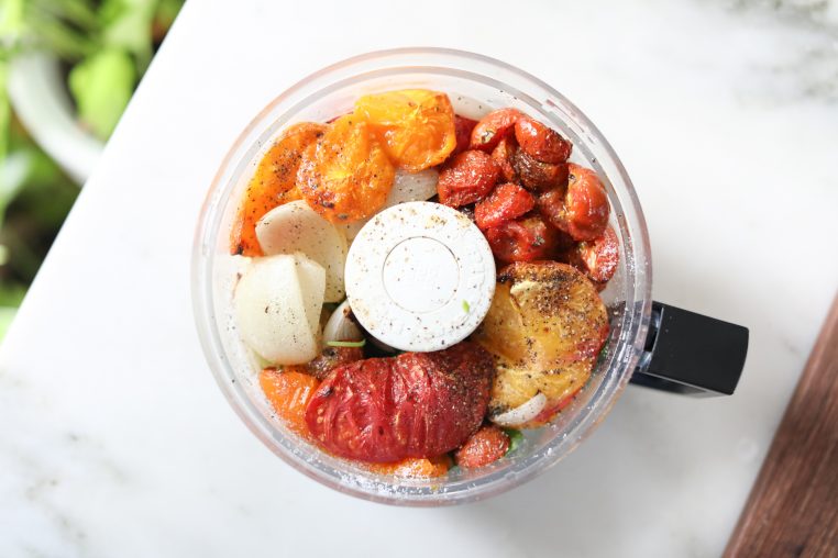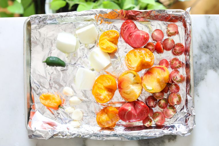 Roasting the vegetables first adds a smokey flavor that works perfectly with the acidy from the tomatoes, as well as the heat from the chilies.