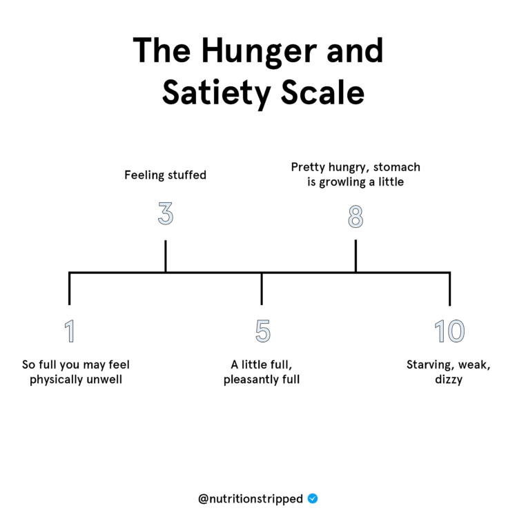 The first step to using the scale is to get to know your own body. How does it communicate hunger? What about slight hunger? What does it feel like? And on the flip side, what does fullness feel like?