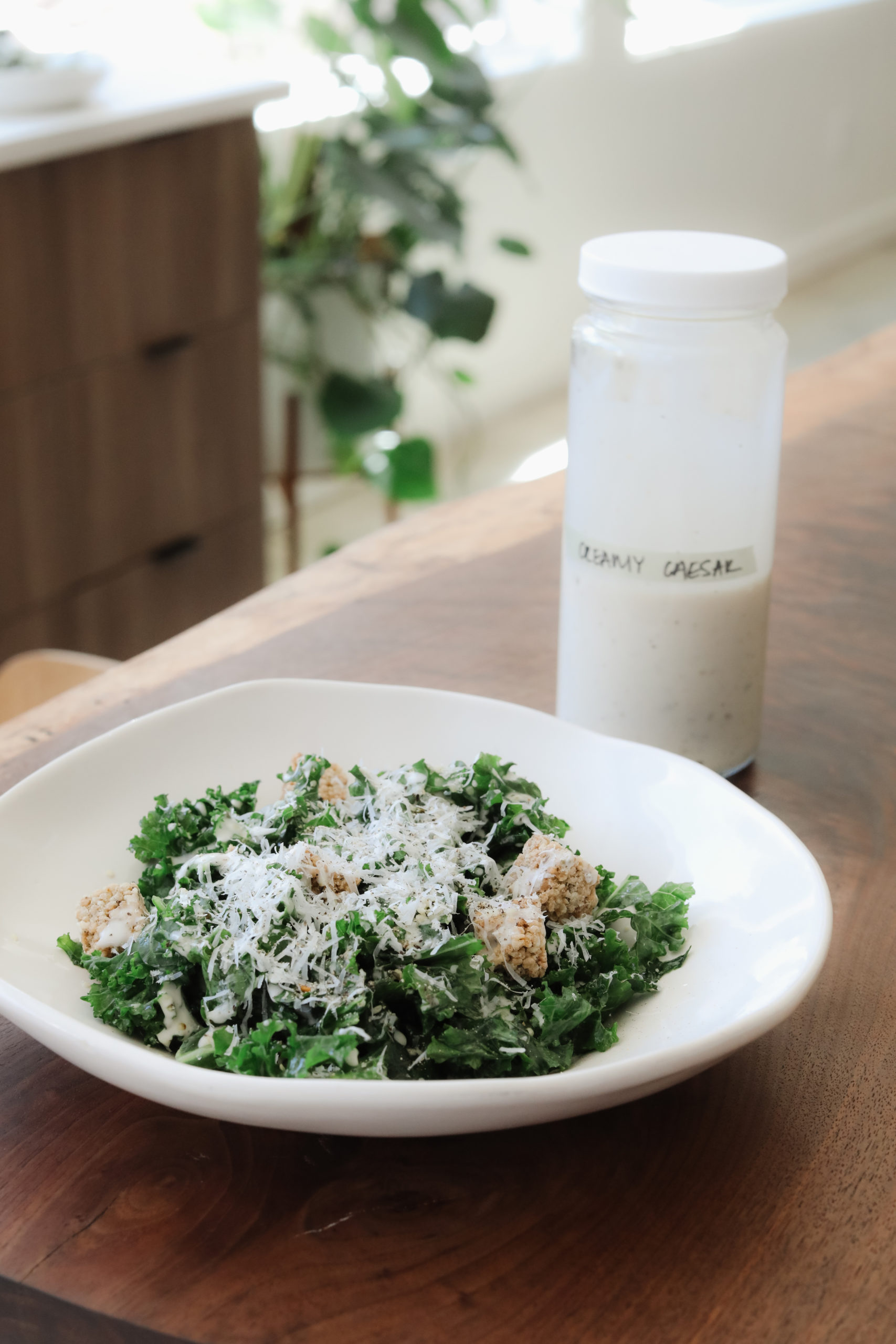 How To Make This Simple Kale Caesar Salad with Maple Pepper Tempeh