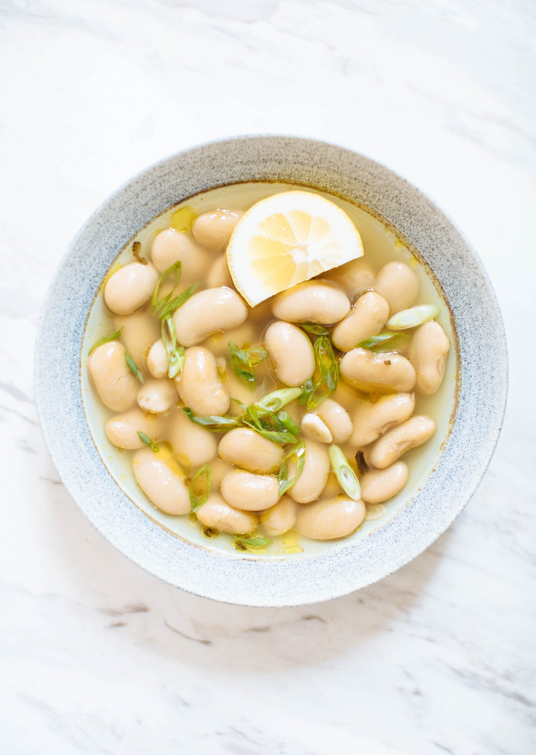 To soak your beans, cover them with a couple of inches of water in a bowl with a bit of baking soda. The baking soda helps break them down. Let them sit for at least six hours, preferably overnight if you’re able to. Once they’re done soaking, strain your beans and you’re ready to cook!