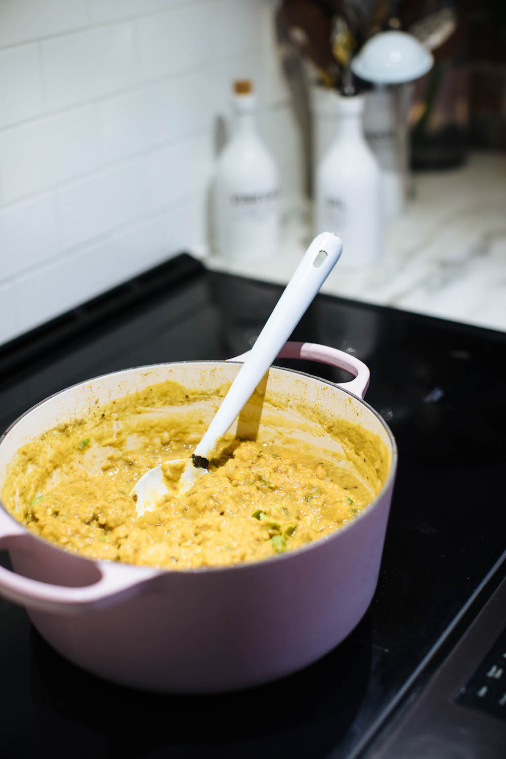 Red Lentil Daal with Squash and Coconut is a delicious and warming recipe to make on the weekend to later warm up for a quick lunch or dinner. We make it for two and it lasts all week long, so even for a family of four, you’re sure to get multiple meals out of this 1 dish!