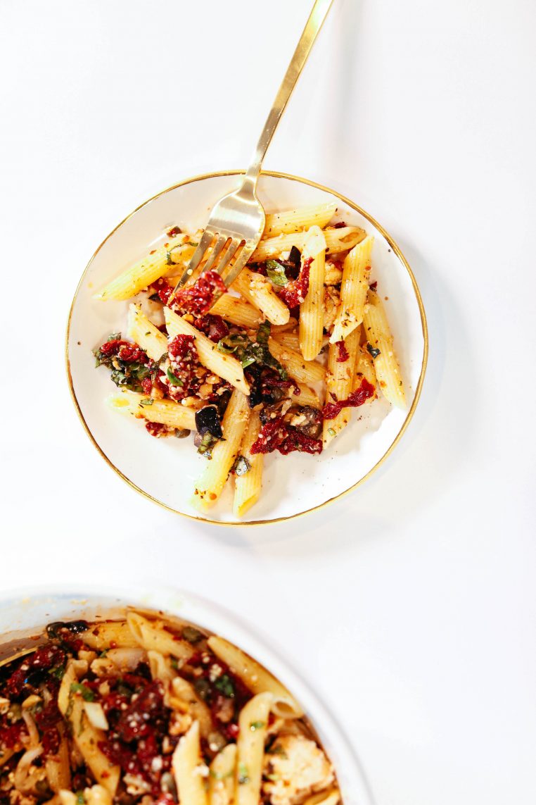 We love making big batches of this Simple Sun-Dried Tomato Pasta, and enjoying it either reheated or chilled, right out of the fridge!