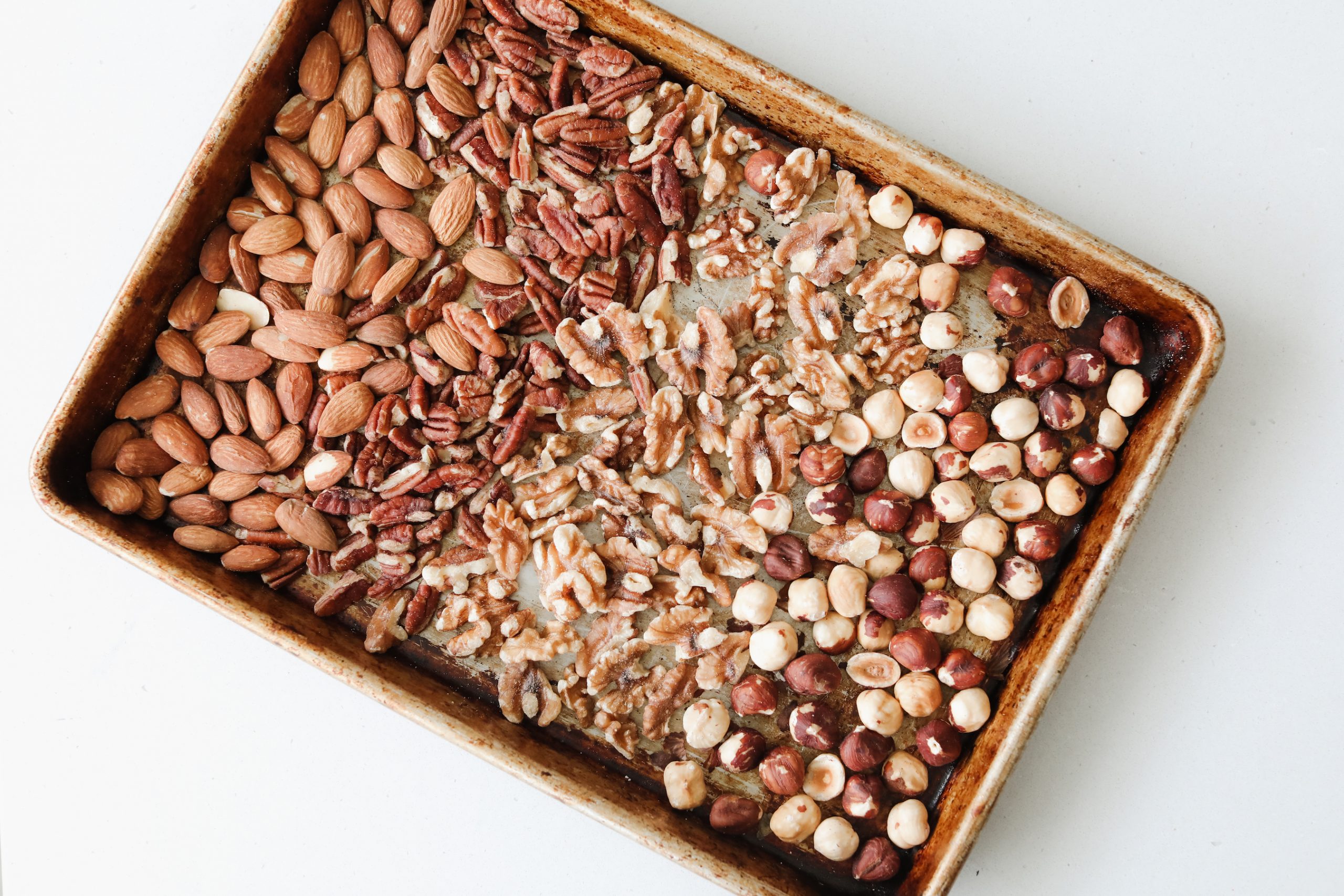 Simply toast all of your nuts on a sheet pan in the oven. Once fragrant and golden brown, combine in a blender or food processor and mix until you get a creamy texture of your liking.
